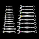 - Con un giro repetido de 180° de la llave alrededor del eje longitudinal durante el apriete, hay cuatro posibilidades de sujeción y las tuercas o cabezas de los tornillos se pueden "agarrar" cada 15°.