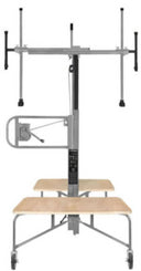 Elevador de placas com posições horizontais e inclinadas no telhado, com uma capacidade máxima de carga de 75 kg e uma altura máxima de instalação de 4,00 metros. Tem 4 rodas com sistema de bloqueio.