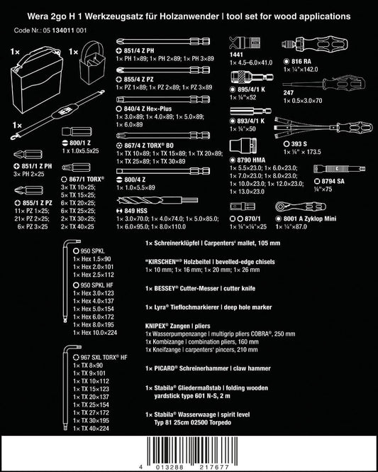 Jogo de ferramentas para o trabalho da madeira 134 peças Wera 134011