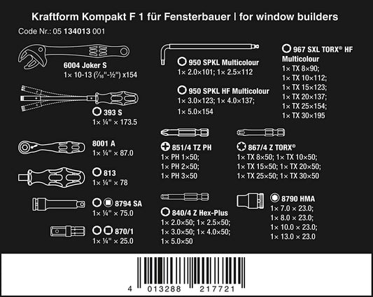 Ferramentas de aparafusar para trabalhos de fenestração 35 pcs. Wera Kraftform Kompakt F 1