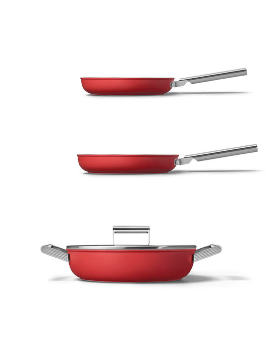 Juego de 4 Sartenes Antiadherentes Rojo Mate Smeg