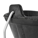 Cubo italiano negro de 10 litros con asa metálica, de caucho resistente con una alta capacidad de absorber impactos. El cubo italiano ha sido diseñado y fabricado para ser resistente a golpes y caídas, a altas y bajas temperaturas y con protección UV para garantizar una larga vida útil. Para trabajos exigentes de albañilería, mezclado, transporte de áridos y agua.