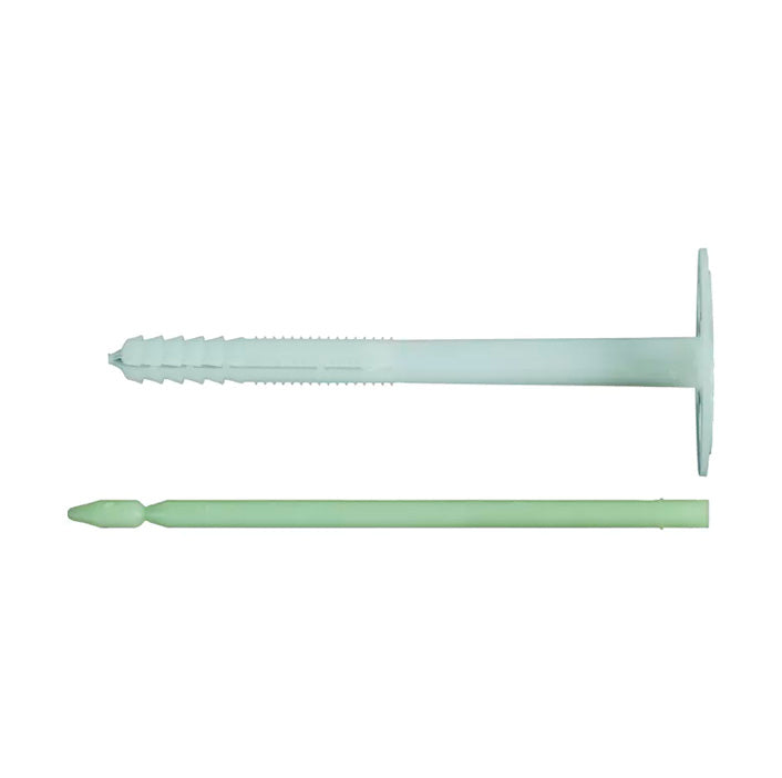 - El clavo de plástico reforzado de fibra de vidrio (clavo GRP) reduce la transmisión del calor y previene marcas en la superficie enlucida.
