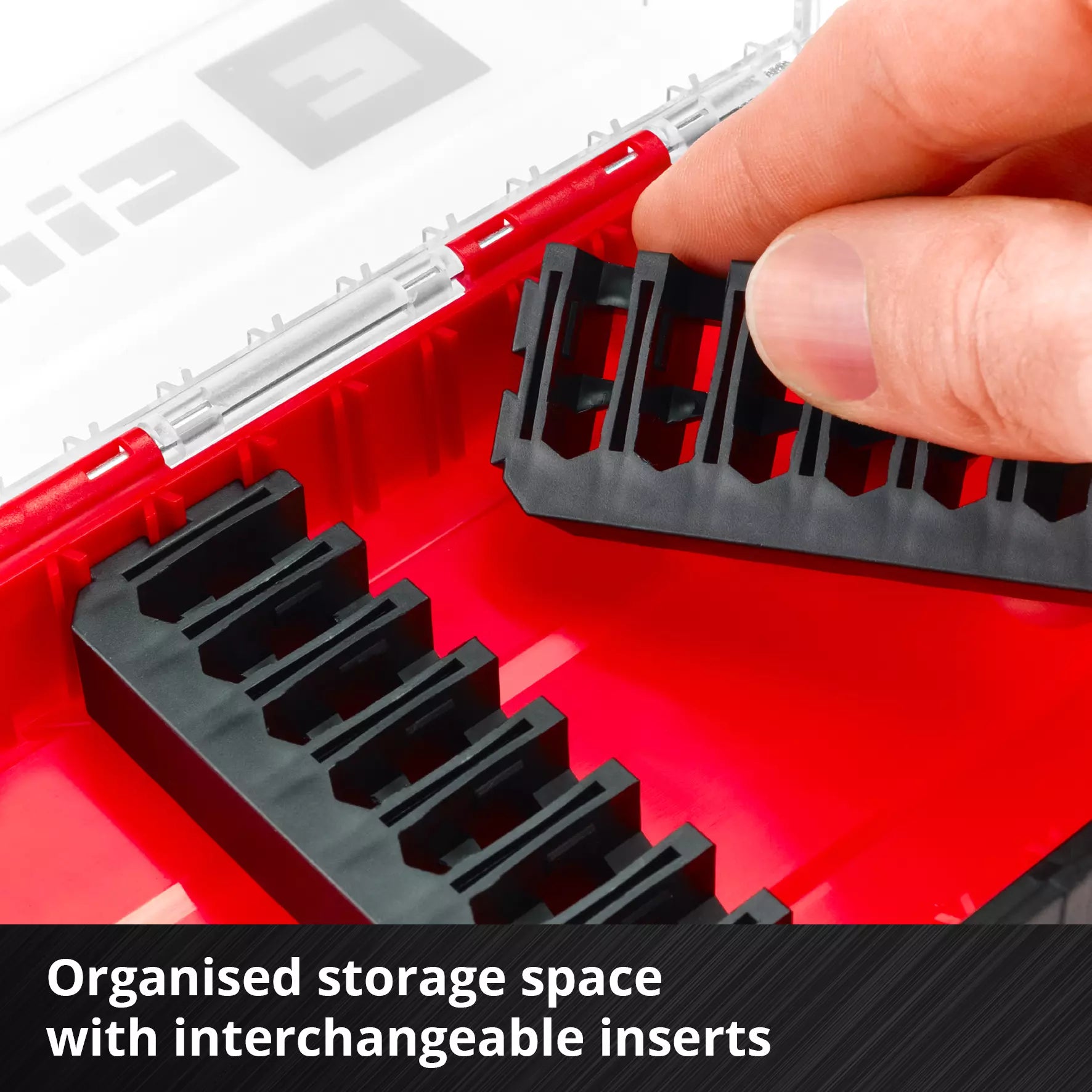 • Almacenamiento organizado: Incluye una práctica caja de almacenamiento con cierre de clip auto-lock robusto y tapa transparente, que facilita la organización y permite visualizar el contenido de un vistazo.