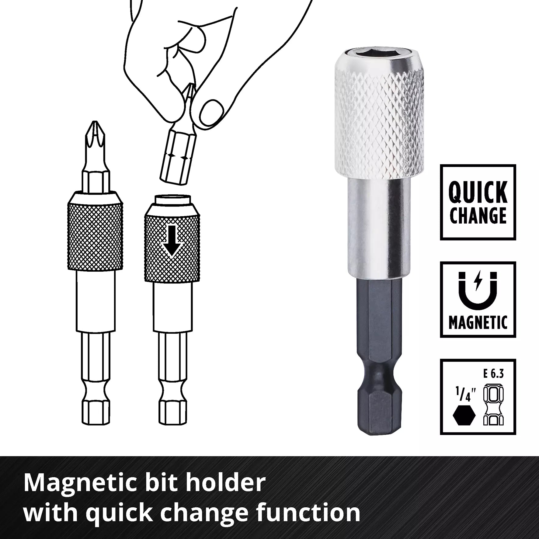 • 1 portapuntas de cambio rápido (60 mm) con manga metálica y potente imán.