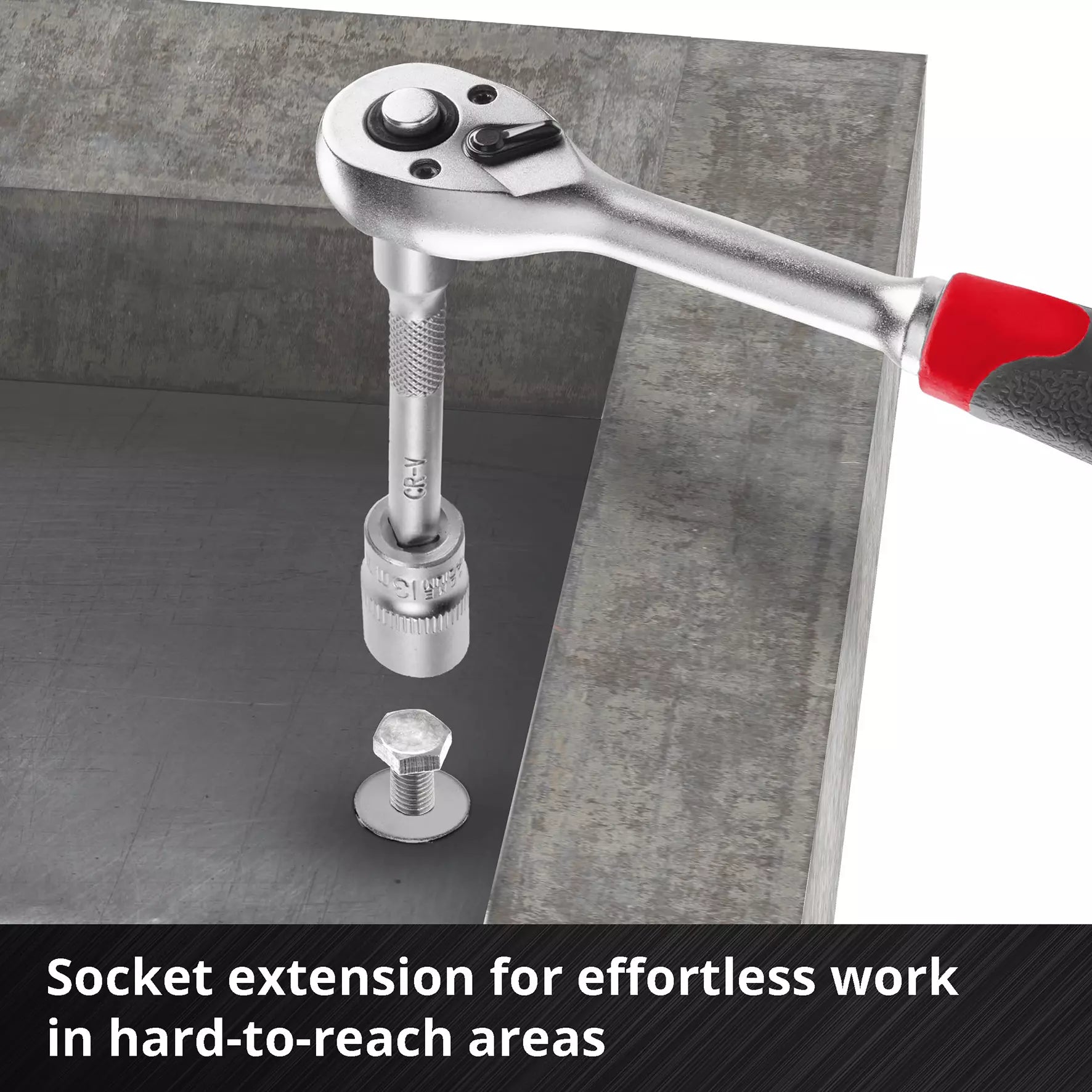 • 1 extensión de vaso (75 mm) de acero CV cromado mate.