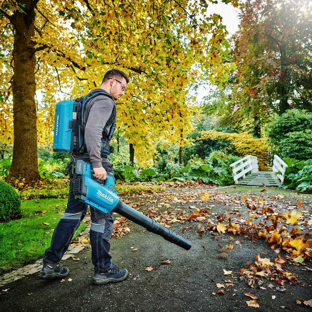 Mochila portabaterías para hacer funcionar las herramientas LXT® de 18 V. El acumulador puede utilizarse con herramientas de la serie LXT® 18V y 18V X2 con un adaptador adecuado que se adapte a la herramienta. El pack de energía puede albergar hasta cuatro baterías y de esta manera proporciona energía a su herramienta durante mucho tiempo en comparación con el uso de una o dos baterías conectadas.