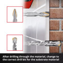 • Después de perforar el material cerámico, se aconseja cambiar a una broca adecuada para el material base, como una broca para hormigón o mampostería.