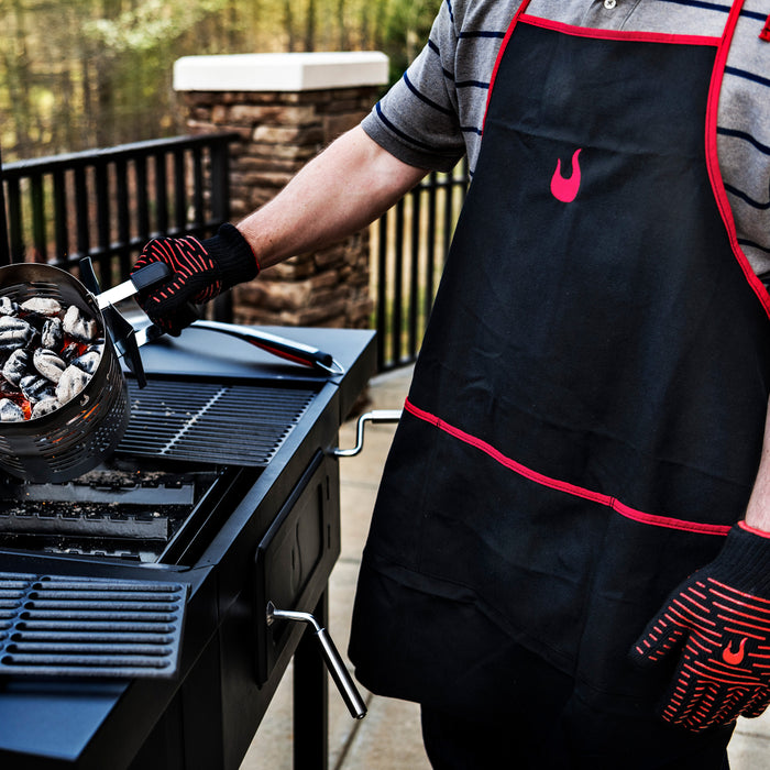 Avental da marca Char-broil. Acessório para evitar manchas enquanto cozinha no seu churrasco ou onde quer que esteja.