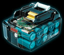As baterias Makita de 18V de iões de lítio resistem à autodescarga, por isso estão prontas mesmo após longos períodos de armazenamento. O Makita Optimum Fast Charger (vendido separadamente) é um sistema de carregamento inteligente que comunica com a bateria durante o processo de carregamento para monitorizar a corrente, tensão e temperatura. Esta tecnologia avançada de carregamento ajuda a otimizar a vida útil da bateria e proporciona um carregamento mais rápido. Além disso, o carregador tem um ventilador incorporado para arrefecer a bateria para um carregamento mais rápido e mais eficiente mesmo em condições de tempo quente.