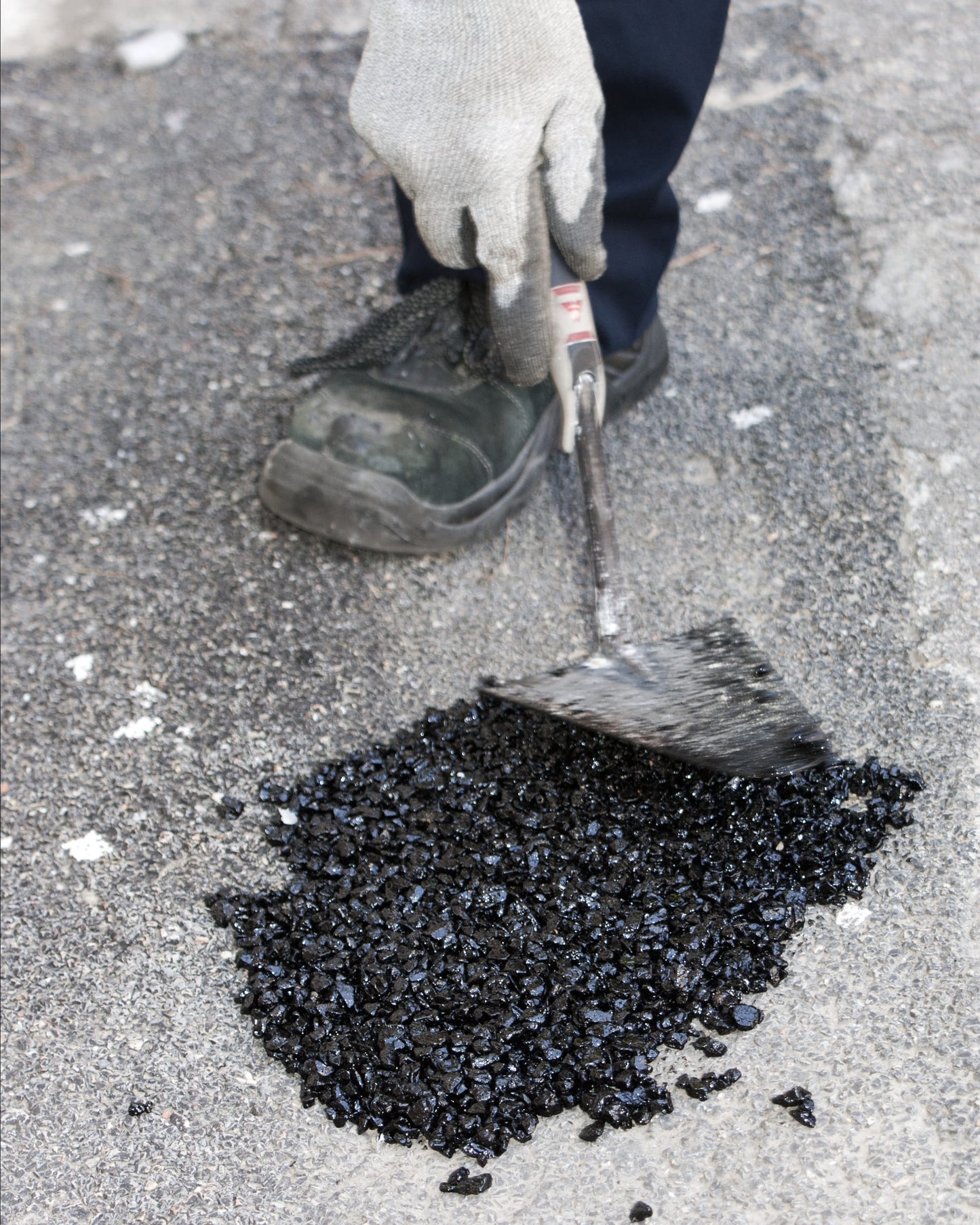 Aglomerado asfáltico frio para pequenas reparações em pavimentos de betão e asfalto. Não é necessária qualquer mistura, é utilizada tal como vem na embalagem.