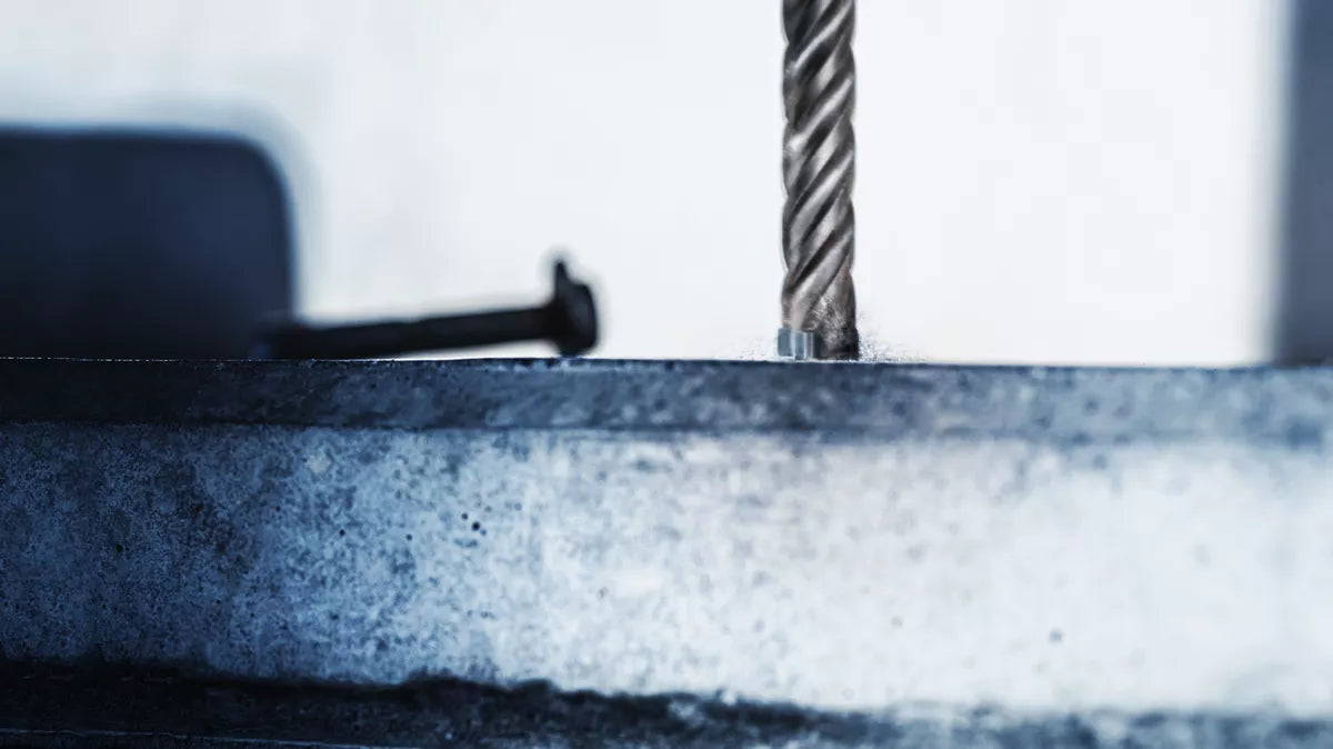 - Fura betão armado com cabeça maciça de metal duro com 4 arestas de corte