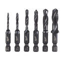 Conjunto de 6 brocas combinadas HSS-G 3 em 1: furar, raspar e rebaixar numa só operação.- Adequadas para utilização com berbequins com ou sem fios.