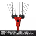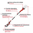 - A velocidade deste movimento pode ser ajustada através de uma roda giratória. Os dentes de carbono individuais podem ser facilmente trocados. Para alcançar até mesmo galhos mais altos sem problemas, o comprimento total deste assistente de colheita elétrica pode ser ajustado através da função telescópica entre 220 e 310 cm.
