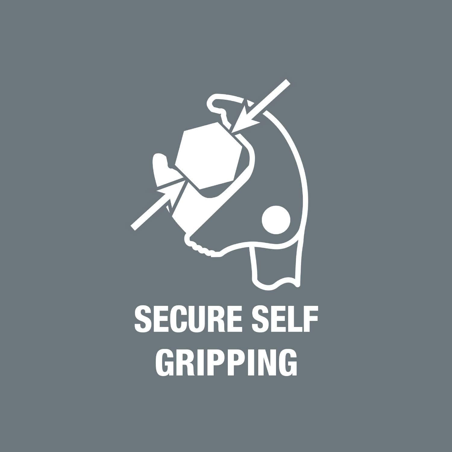 - Durante a acção de agarrar, o mecanismo de alavanca evita deslizamentos e danos