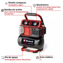 Aquí tienes el texto traducido al portugués, conservando el formato HTML: ```htmlCom o compressor a bateria TE-AC 18/75 Li OF-Solo você nunca ficará sem ar, seja na oficina ou na garagem. Isso é garantido pelo potente e móvel compressor a bateria com um tanque de 5 litros, uma pressão máxima de funcionamento de 8 bar e uma potência de aspiração de 75 litros por minuto. Ele é alimentado por uma bateria Power X-Change de 18 V. A bomba é livre de óleo e manutenção, o que mantém os custos de manutenção o mais baixo possível.