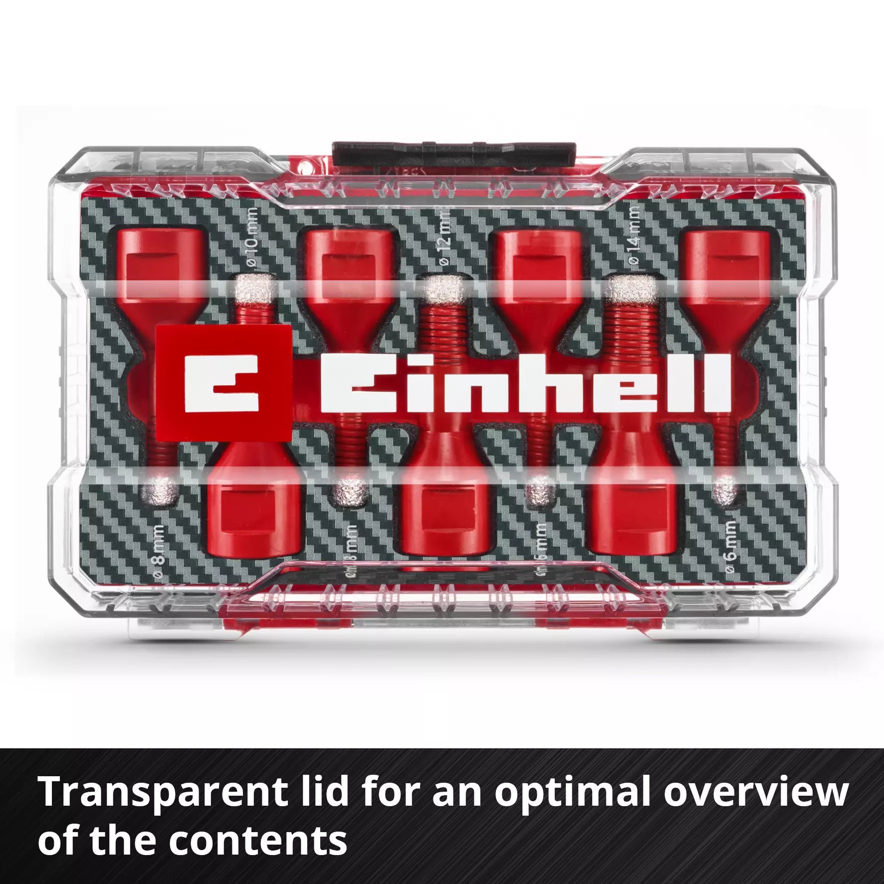 O Jogo de Brocas M-CASE LS de 7 peças da Einhell foi projetado para perfurar materiais como porcelanato, azulejos e pedra natural. Estas brocas de diamante oferecem uma longa vida útil e permitem cortes a seco, sem a necessidade de refrigeração adicional.