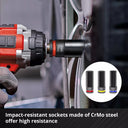 - Comprimento de cada soquete: 80 mm, ideal para trabalhar em caixas de roda profundas ou com jantes mais largas