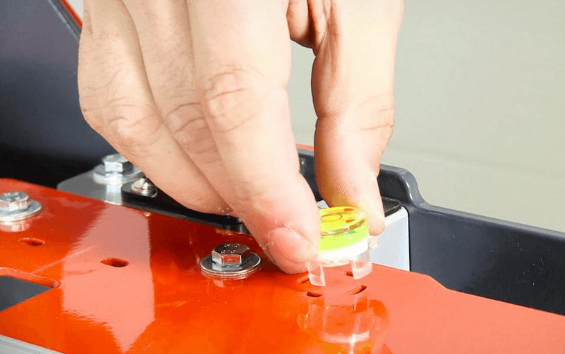 - Nível de bolha circular para facilitar o posicionamento correcto do cortador eléctrico.