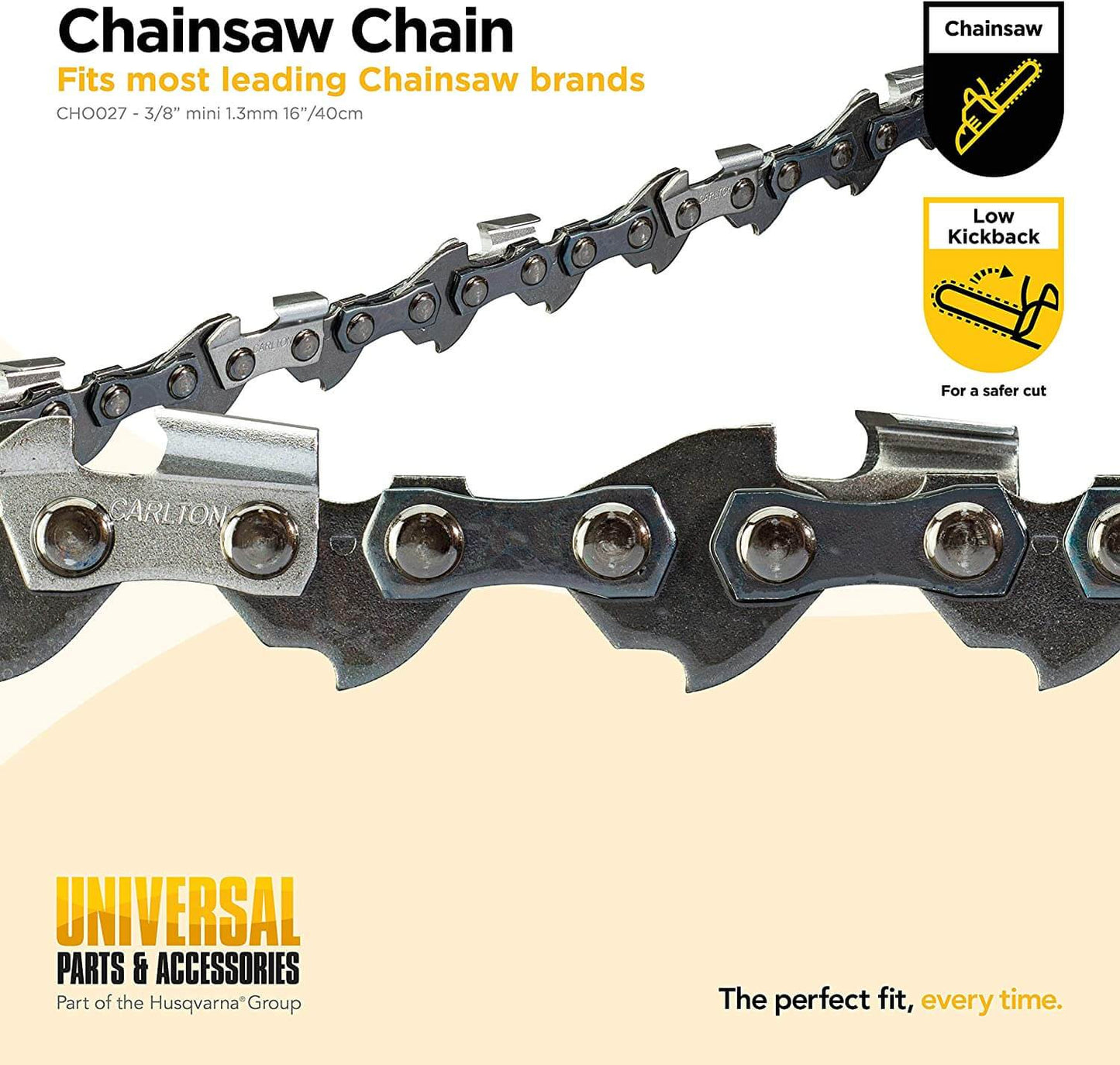Ao utilizar esta corrente de substituição, considerar as dimensões da serra, o tipo de madeira a cortar e a lisura desejada do corte. A utilização da corrente adequada permitir-lhe-á executar qualquer tarefa em segurança.