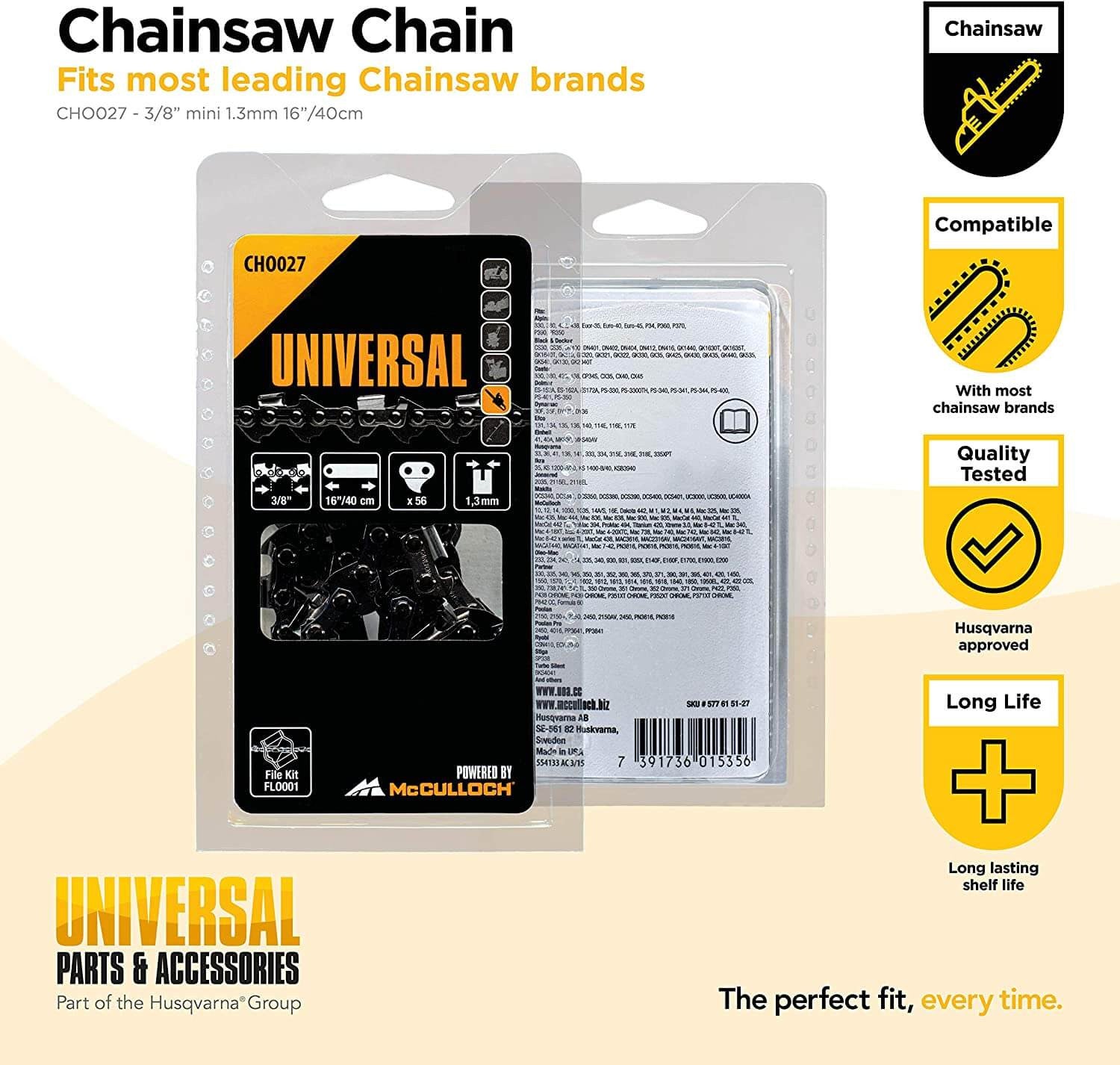 Por favor, certifique-se de que o seu modelo aparece na lista de modelos compatíveis. Note que a sua motosserra pode ter diferentes comprimentos de barra, por isso é importante que conte os elos da corrente.