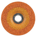 Disco de desbaste de 125 mm de diâmetro, especialmente formulado com grão cerâmico (A24P) para remover rebarbas, soldas ou imperfeições em aço inoxidável e aço carbono. Ideal para acabamento de bordas após corte, limpeza de juntas ou preparação de superfícies metálicas.