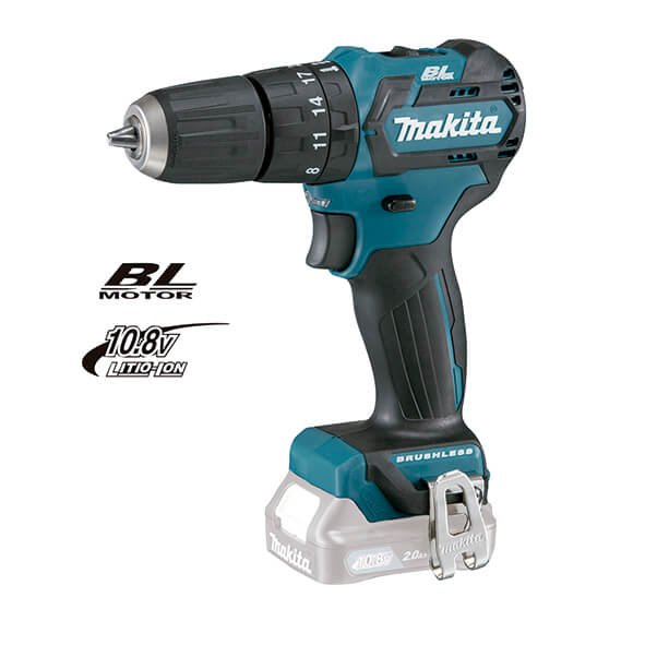 HP332DZ Makita 10.8V Perfuradora de percussão de lítio 2Ah com motor brushless BL. Martelo, berbequim e chave de fendas. 18 posições de torque e perfuração. Velocidade variável de 0 a 1500 rpm. Mandril automático sem chave.