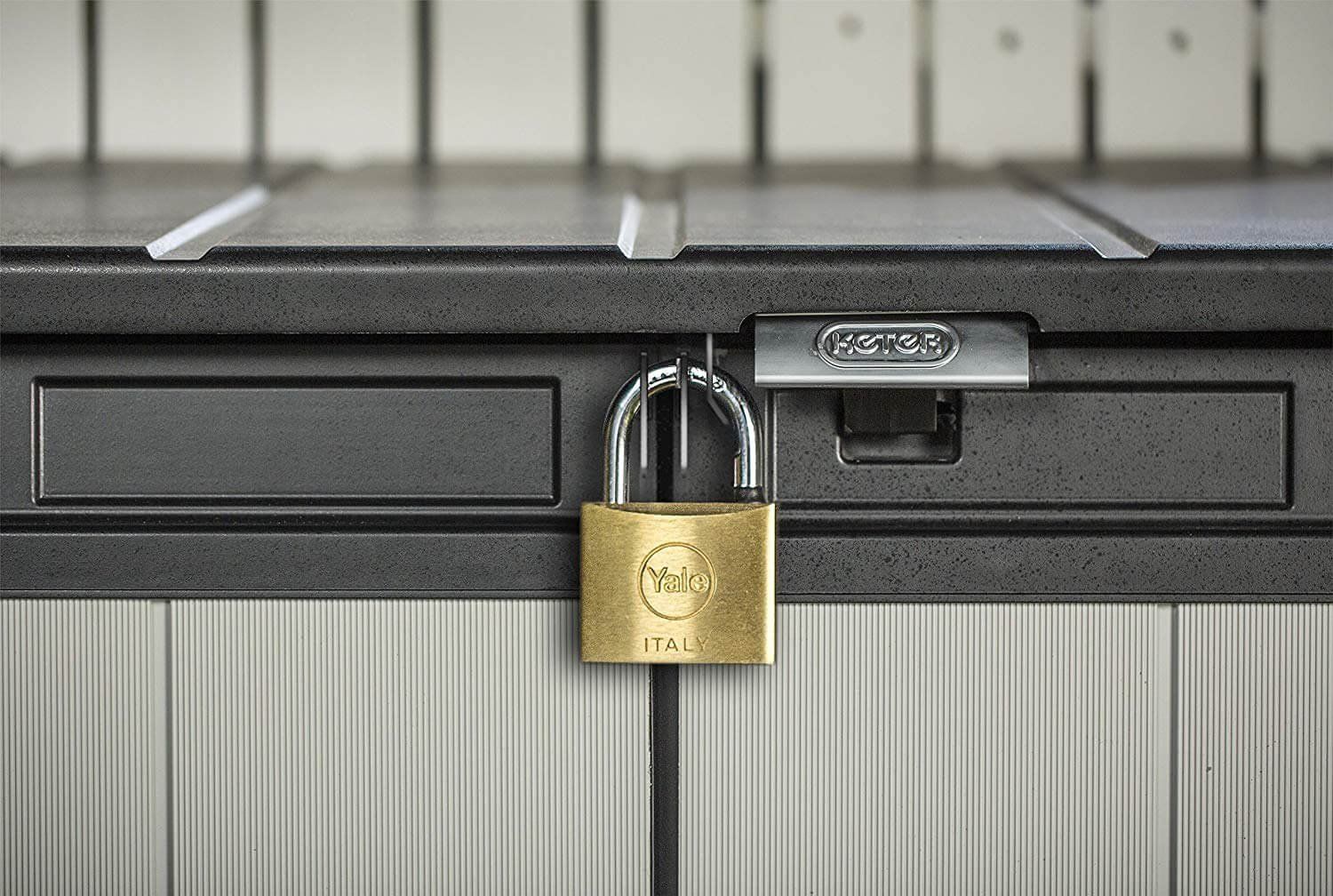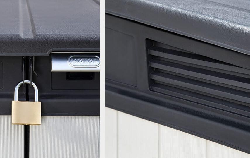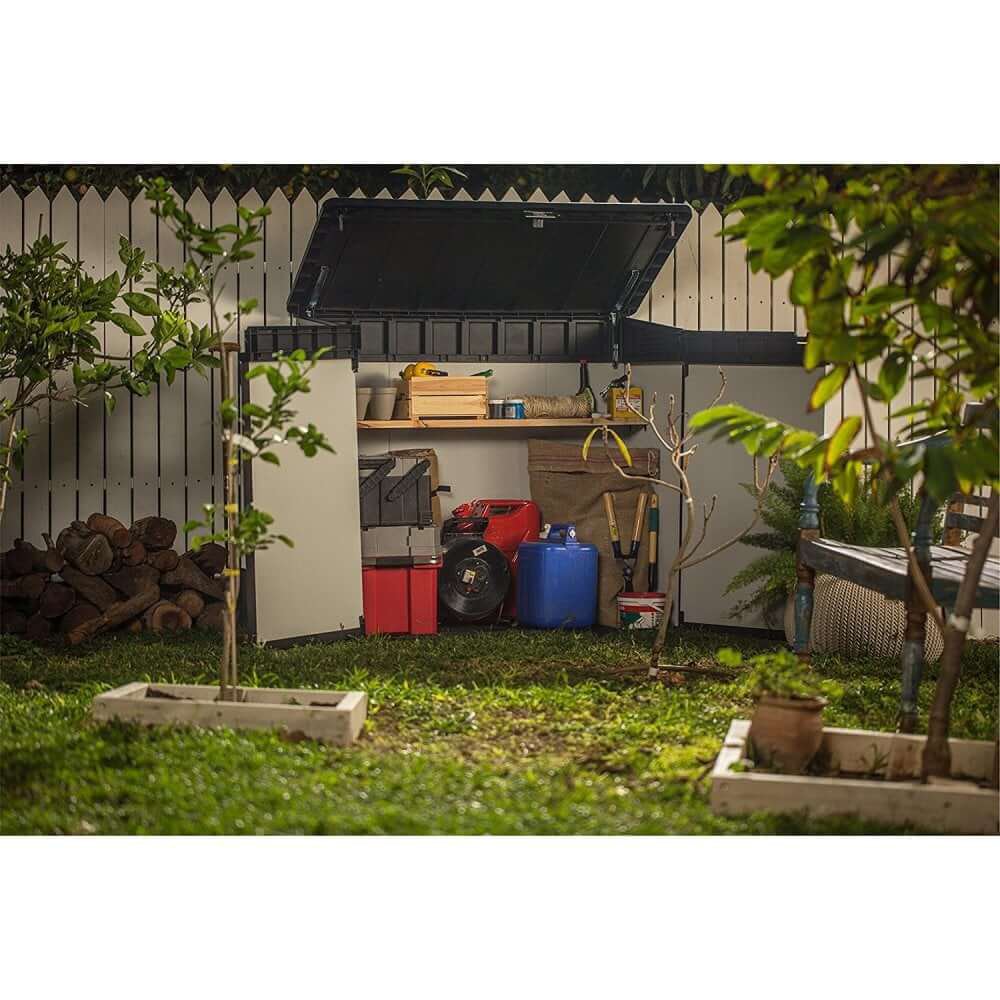 - 1150 L / 41 cu. ft. de capacidade oferece muito espaço de armazenamento para equipamento de jardim, almofadas e acessórios