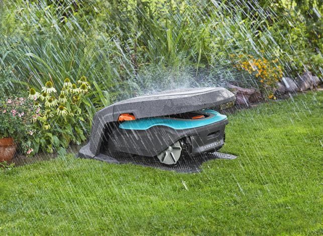 - Protecção contra o sol e a chuva: Os cortadores de relva robóticos GARDENA são muito robustos e feitos para trabalhar no exterior. Protecção adicional contra o sol directo e a chuva é fornecida por esta casa bem concebida.