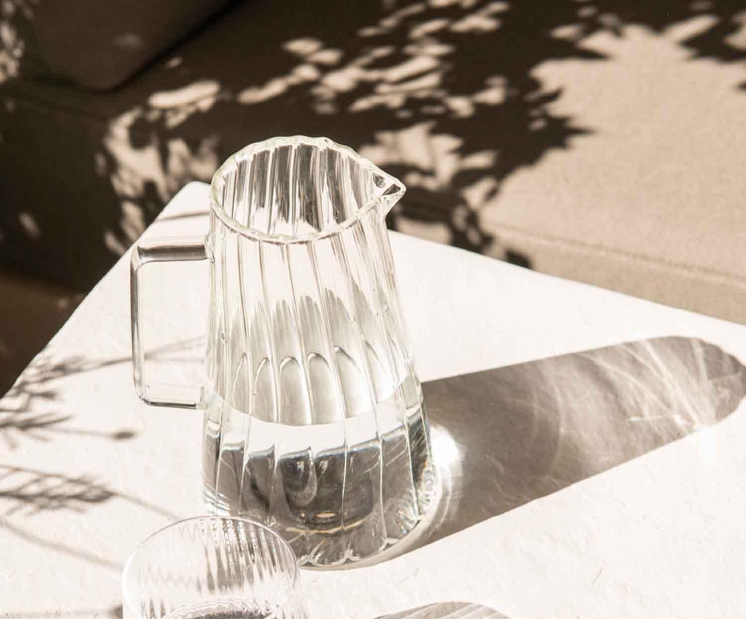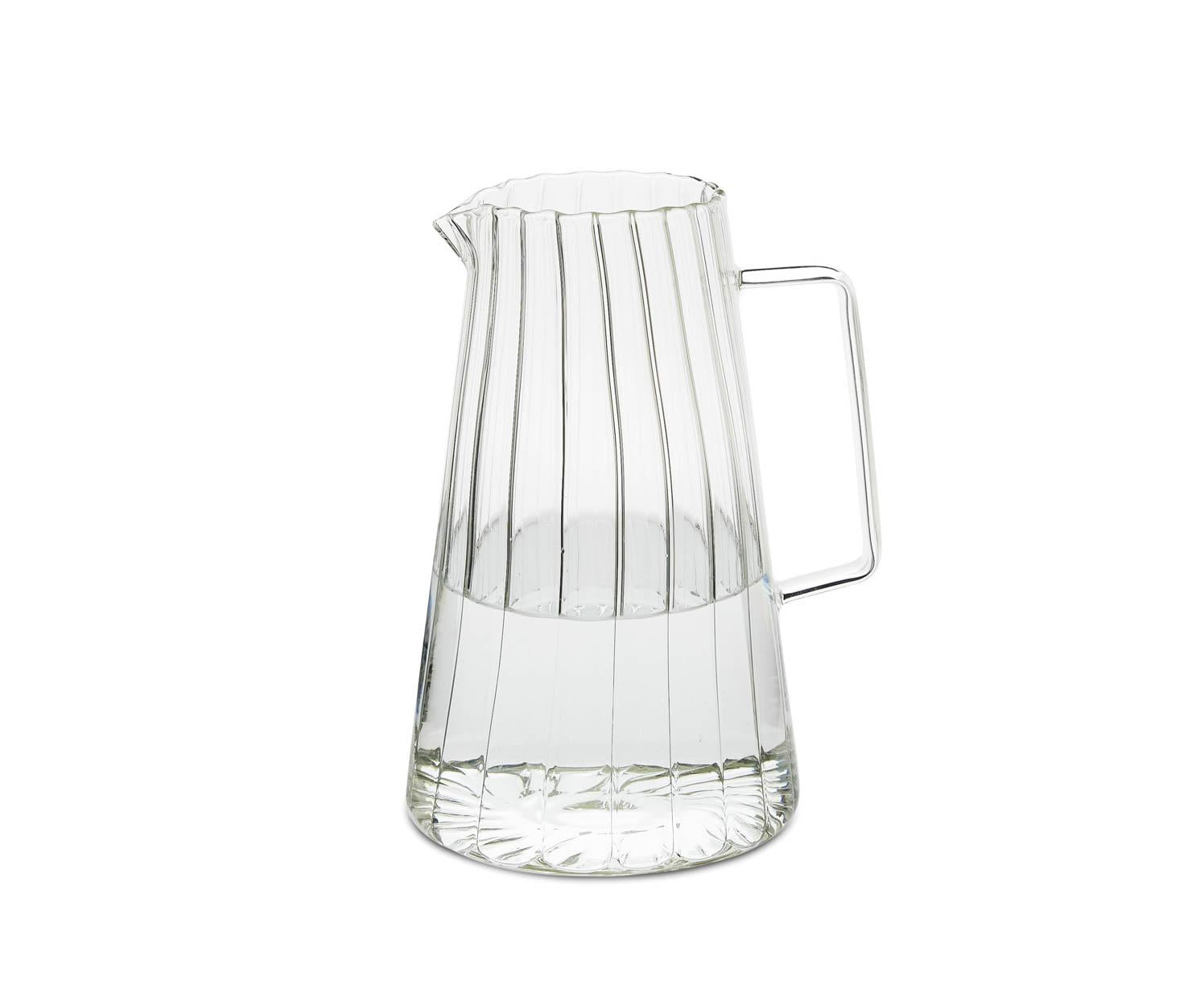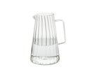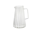 Jarra de água de vidro com 1 litro de capacidade, com design clássico listrado e alça ergonômica, perfeita para servir água ou outras bebidas à mesa ou mantê-la fresca na geladeira. Seu estilo atemporal combina com qualquer tipo de mesa e decoração.