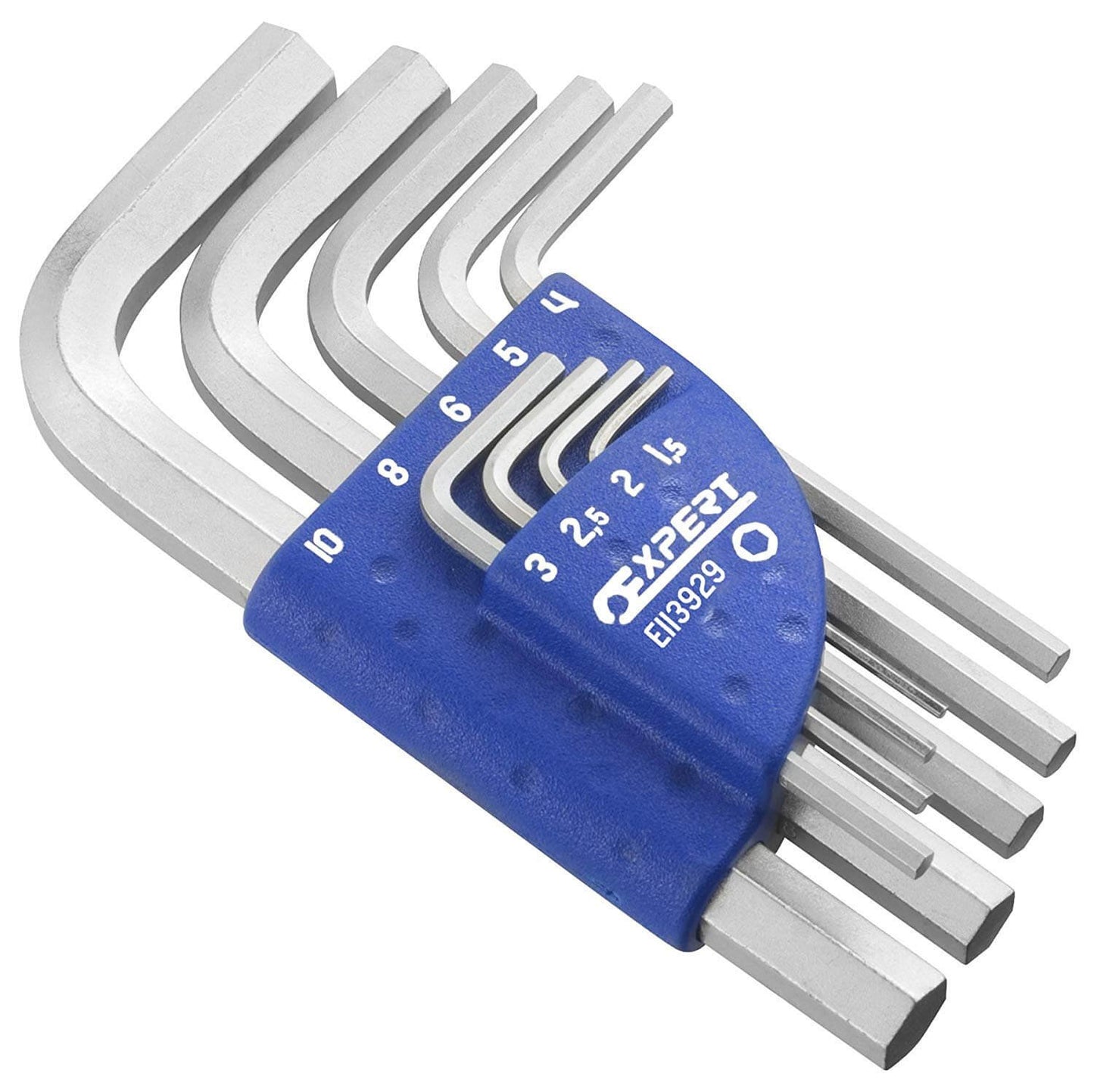 Conjunto de 9 chaves hexagonais com a referência de especialista E113929. Chaves de porcas masculinas feitas de liga de aço tratado termicamente com acabamento preto.