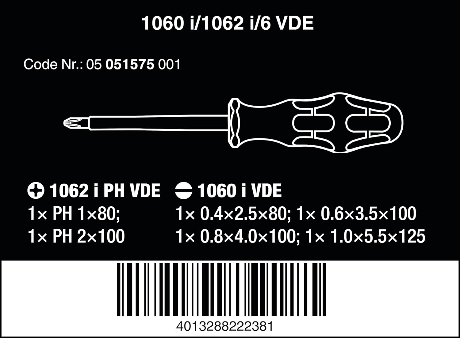Conjunto de chaves de fendas VDE Kraftform de alta qualidade. Cabo Kraftform multi-componente para um trabalho rápido e confortável. A ponta Wera Black Point e um sofisticado processo de endurecimento garantem uma longa vida útil da ponta, bem como uma maior proteção contra a corrosão e uma elevada precisão de ajuste. São testadas a 100 % a 10.000 volts para um trabalho seguro sob a tensão máxima admissível de 1.000 volts. O sistema anti-rolamento hexagonal no punho impede que a ferramenta role para fora do posto de trabalho. A marcação no punho facilita a localização e a seleção da ferramenta.