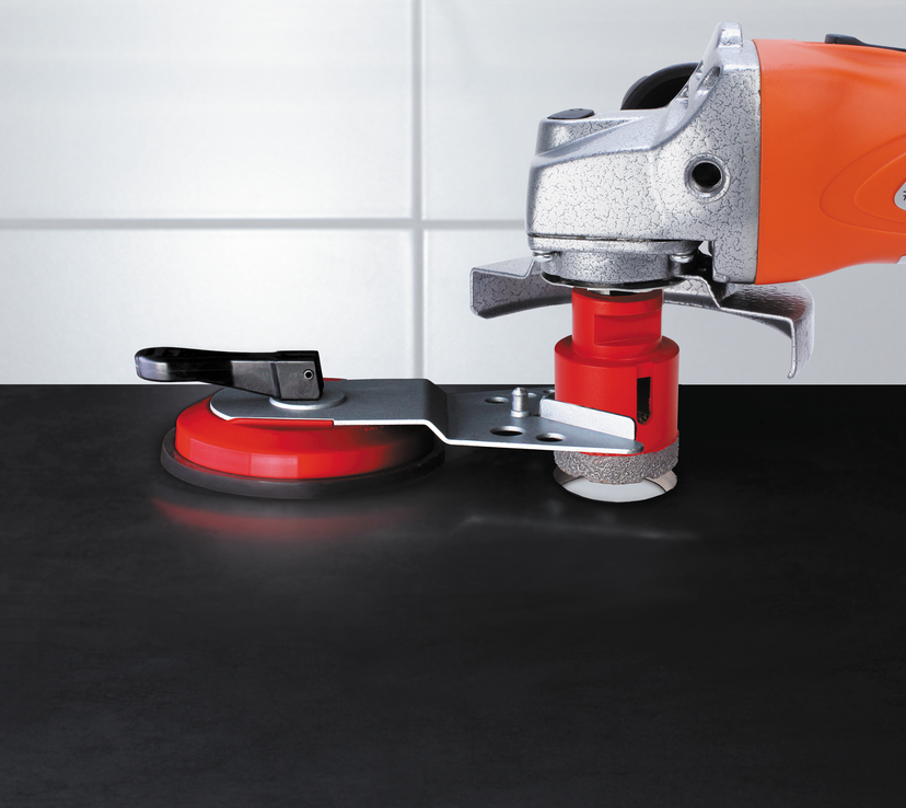 - A guia MULTIDRILL fixa-se por ventosa e permite centralização perfeita mesmo em superfícies verticais