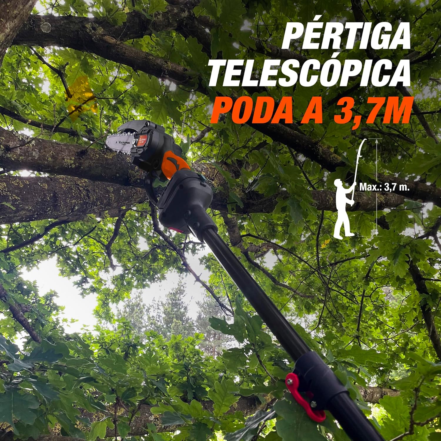 - Podador de altura ajustável, permitindo alcançar galhos altos sem necessidade de andaimes, aumentando a segurança e a eficiência. Faça podas em altura de forma segura e confortável, reduzindo o risco de acidentes.