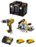 Kit Dewalt con Taladro percutor DCD796 + Sierra Circular DCS572 + 2bat 2Ah + Cargador + TSTAK VI DCK270D2