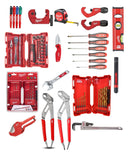 Packout kit instalador Milwaukee incluye un baúl con ruedas + una cajonera con 3 cajones que permite un fácil acceso a sus herramientas. Contiene en su interior 17 herramientas idóneas para un trabajo de instalación.