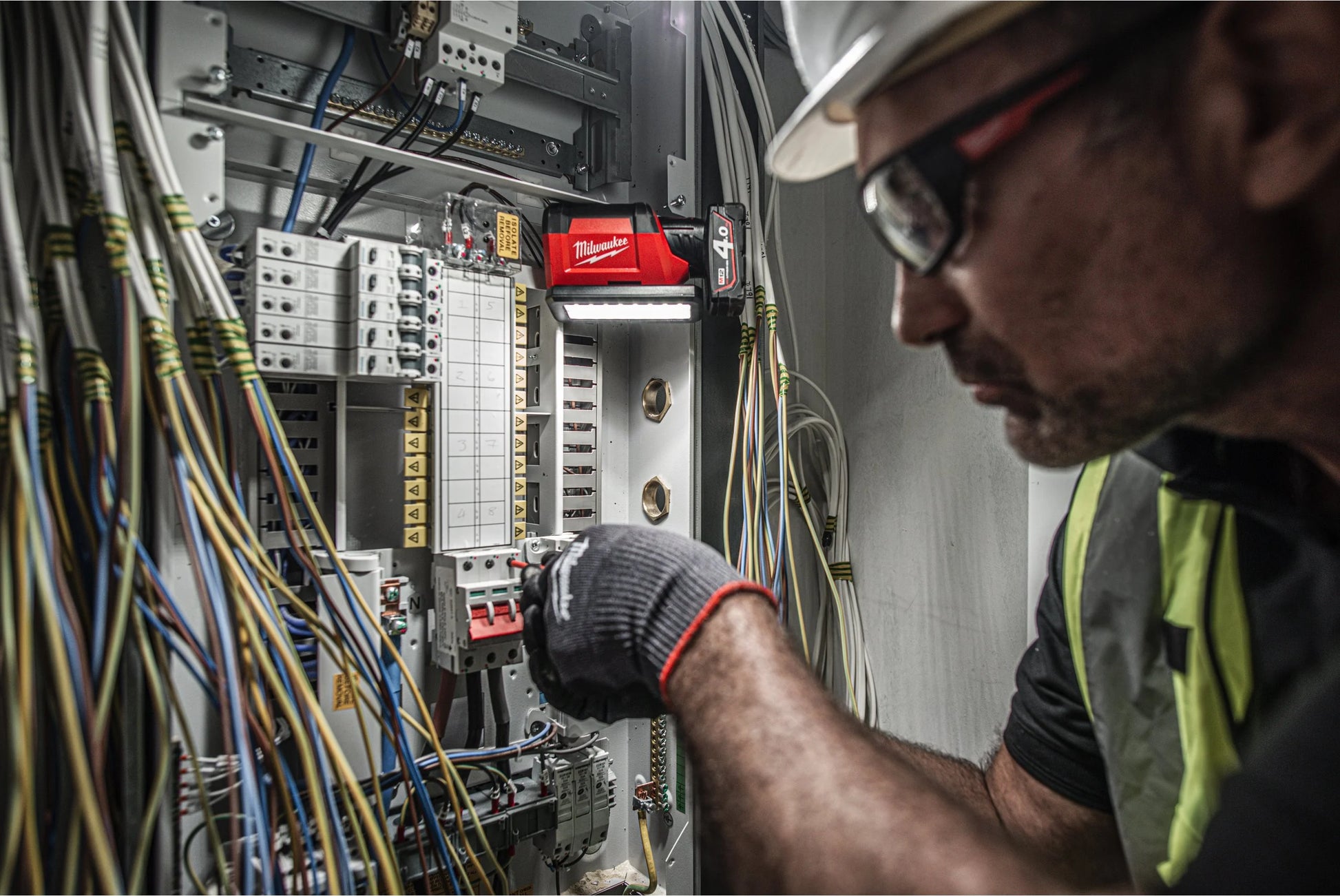 Luz de área pivotante com até 700 lúmens de alta definição TRUEVIEW. Apresenta até 24 horas de autonomia com uma bateria M12 DE 4.0Ah.