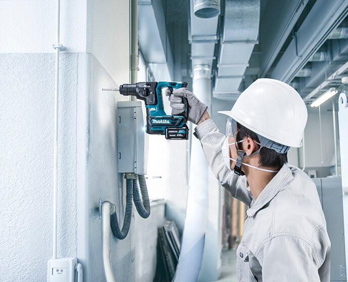 Martelo ligeiro de 16 mm BL 12Vmax CXT. HR166DSMJ. Kit 2 baterias 4,0 Ah, carregador rápido e caixa Makpac. O martelo mais compacto e ligeiro, alimentado por bateria. 360º. Tem 2 modos de funcionamento: rotação e rotação com percussão.