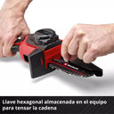 - Para facilitar o tensionamento da corrente, acompanha uma chave hexagonal, que pode ser armazenada diretamente no corpo da ferramenta.