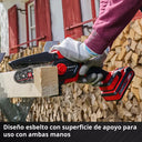 - A serra compacta é equipada com uma área de apoio para as mãos com revestimento antiderrapante, permitindo um manuseio seguro com ambas as mãos.