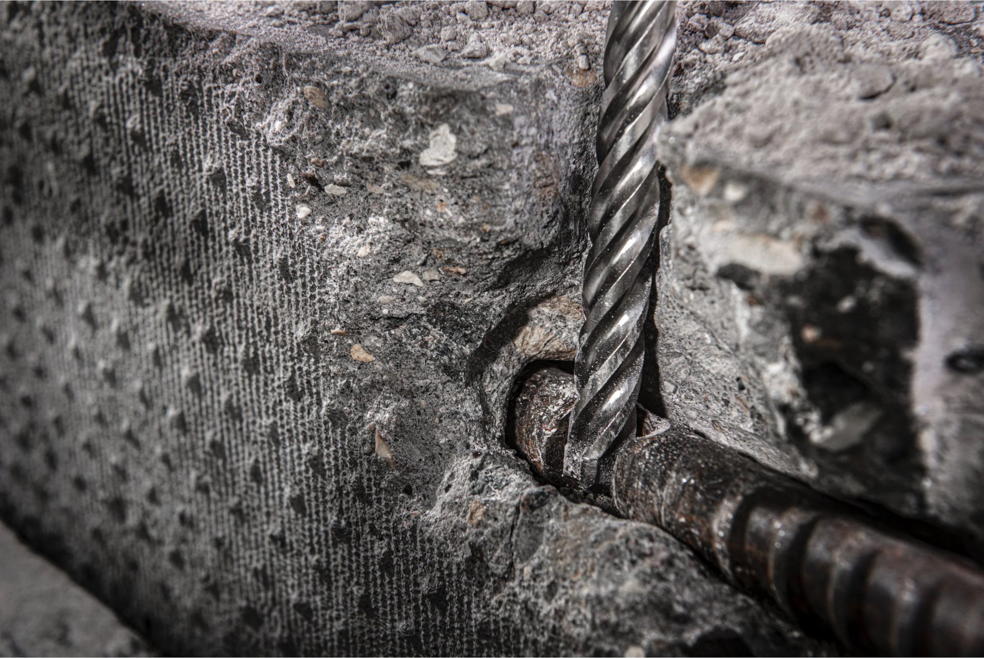 - Ponta fina para máxima extração de material, maior velocidade e menor fricção, borda grossa na base para maior estabilidade e menor desgaste da broca. Até 20 furos a mais com uma carga de bateria em concreto em comparação com brocas de 4 cortes da geração anterior