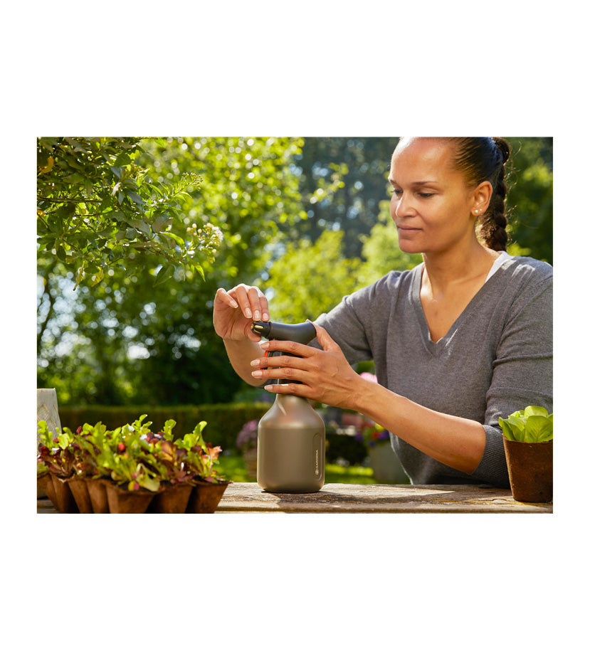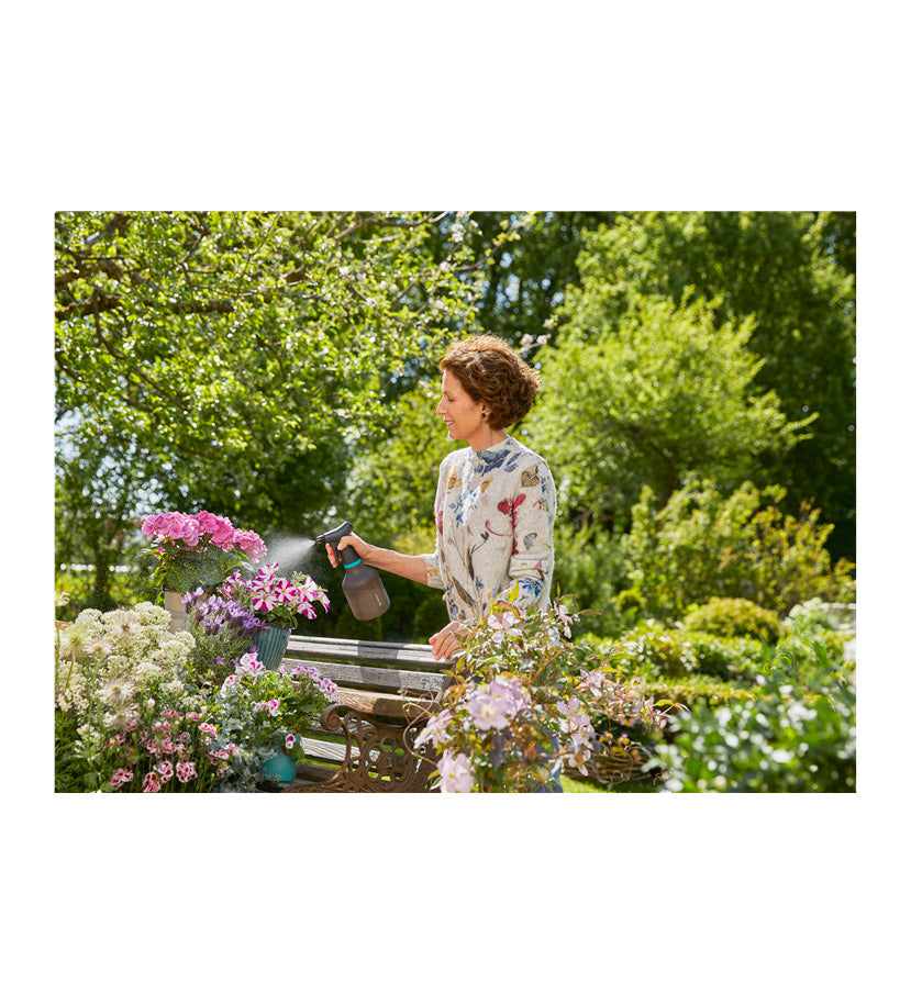 Fornecer rapidamente água às flores das suas plantas: isto funciona na perfeição, uma e outra vez, com o pulverizador de bomba GARDENA de 0,75 l. Tem o pulverizador de bomba imediatamente à mão e pode utilizá-lo dentro de casa, bem como na sua varanda ou no jardim.
