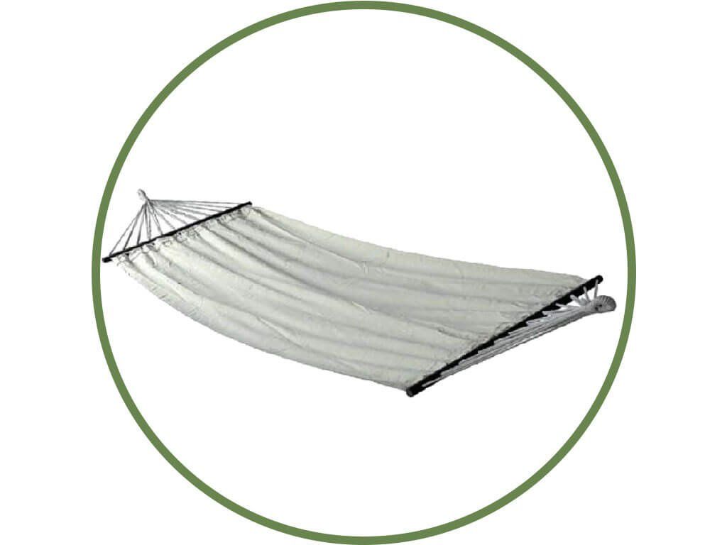 Confortáveis e elegantes, as redes são ideais para relaxar ao ar livre, tradicionalmente amarradas entre duas árvores. Cor bege, mede 200x100cm.