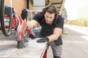 - Inclui alça de transporte e rodas reforçadas com diâmetro de 200mm, tipo off-road, que proporcionam melhor transportabilidade e manuseio da máquina.