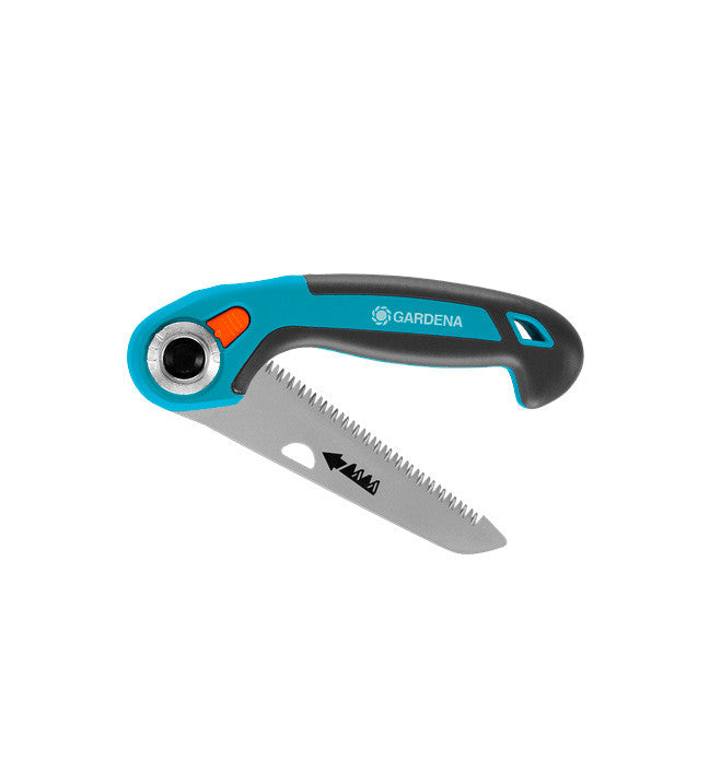 Serra confortável e versátil para todos os tipos de trabalho no jardim. Fechadura de lâmina para três posições possíveis e várias aplicações. Dentes especiais, temperados por pulso, triplamente afiados para um corte sem esforço e um corte limpo e suave. À prova de ferrugem e de baixo desgaste graças à lâmina de serra cromada dura. Segurança antiderrapante durante o corte graças ao cabo de componentes macios e paragem adicional. Com ilhós integrado para pendurar.