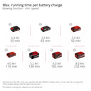 - Motor brushless (sem escovas): maior potência, eficiência e durabilidade.
