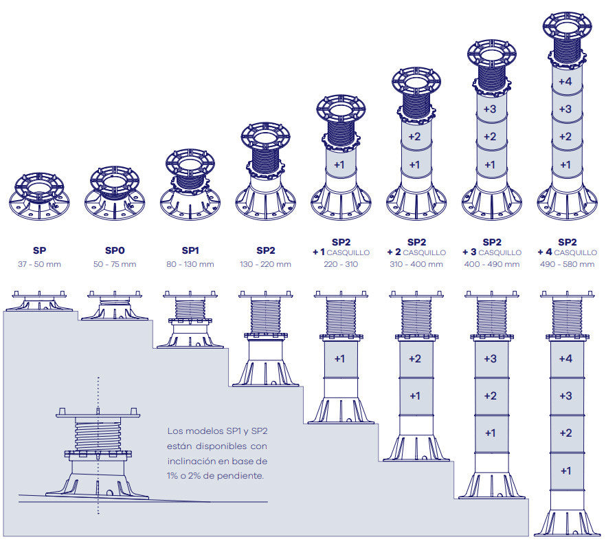 - SP2+1: Suporte de piso flutuante 220-310 mm
