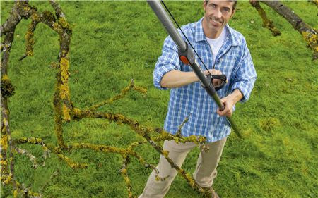 - Através da transmissão de 5 vezes e da dupla alavanca de transmissão, a força é reforçada de forma ótima ao cortar ramos.