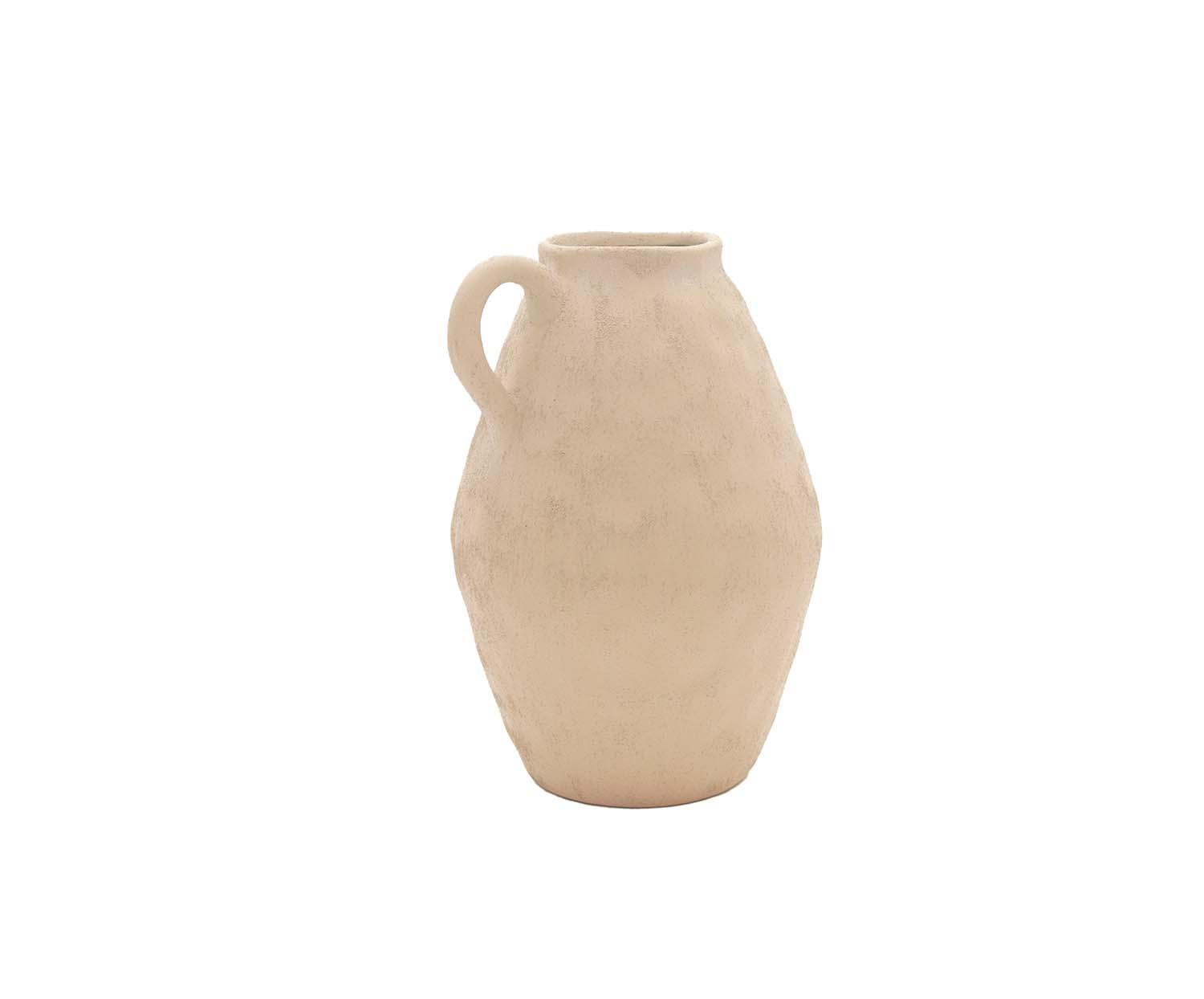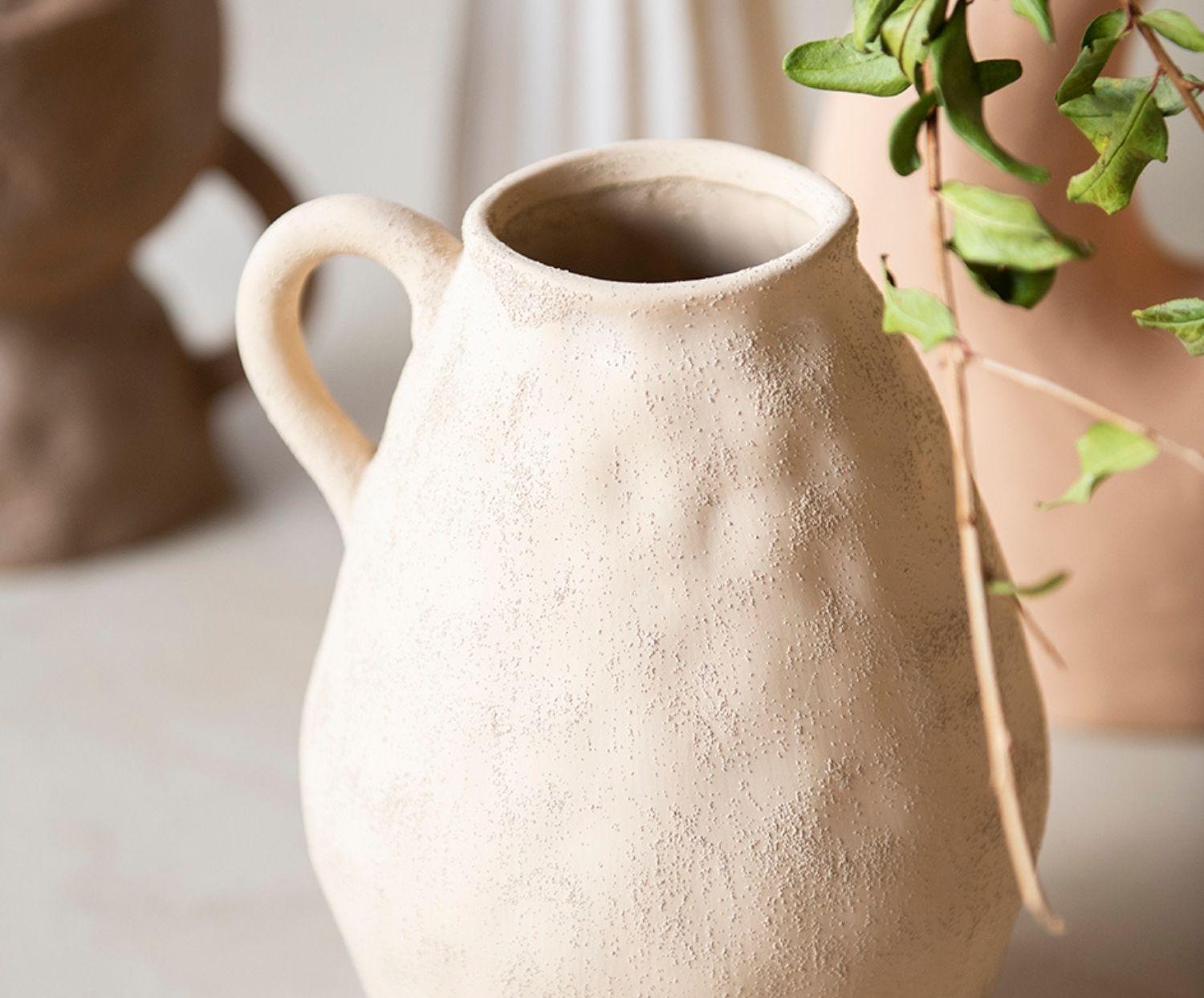 Vaso decorativo em grés em tom bege, com estética natural e linhas atemporais. Seu design sóbrio e versátil proporciona equilíbrio e aconchego a diferentes ambientes decorativos. O acabamento em grés realça seu caráter artesanal e adiciona uma textura sutil. Graças à sua cor neutra, integra-se facilmente a espaços mediterrâneos, contemporâneos ou minimalistas, tanto como peça protagonista quanto combinado com outros elementos.
